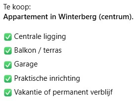 De combinatie van de centrale ligging en de praktische inrichting van het appartement met garage en ruim balkon/terras maakt het een ideale investering voor vakantiegebruik of permanent verblijf!
